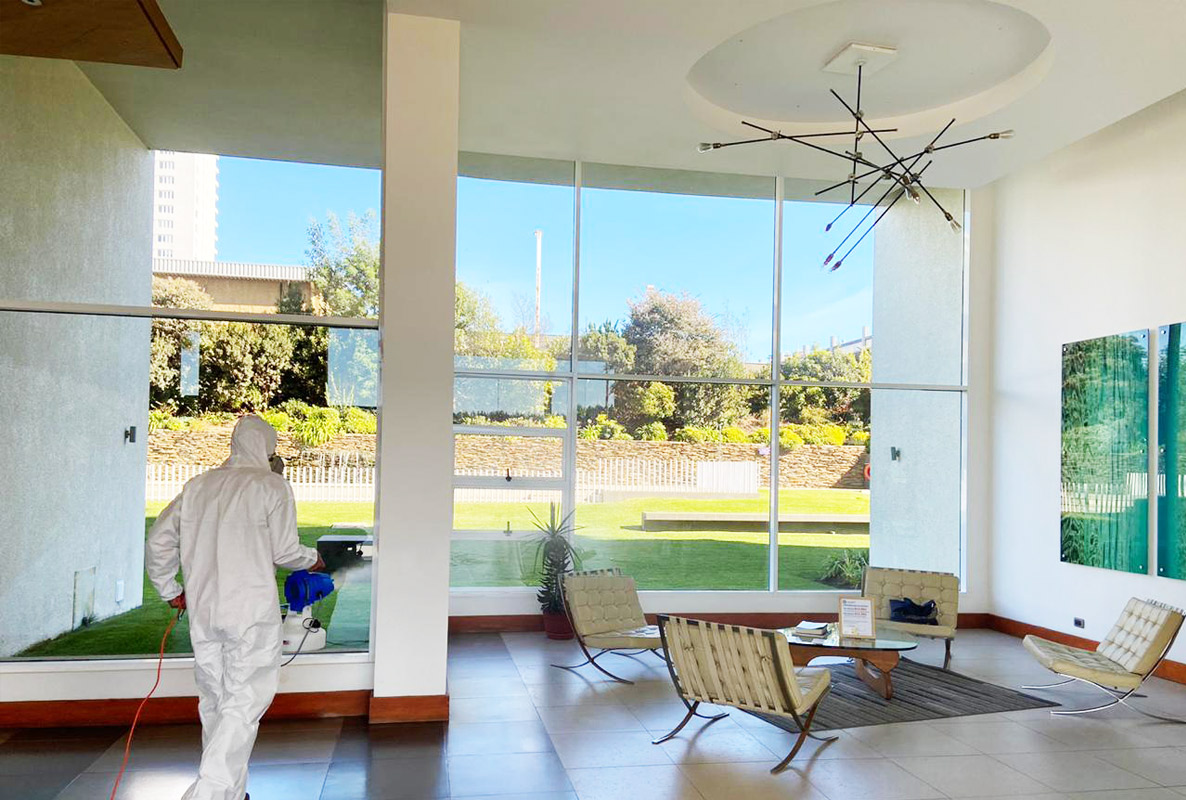 Este servicio tiene por objetivo disminuir la carga contaminante de bacterias, hongos y virus, necesarios en distintas áreas de trabajo, ambientes y espacios, especialmente lugares donde se preparen almacenen o consuman alimentos, en cocinas, dormitorios, pasillos, baños y en los lugares de alto tráfico y circulación de personas.